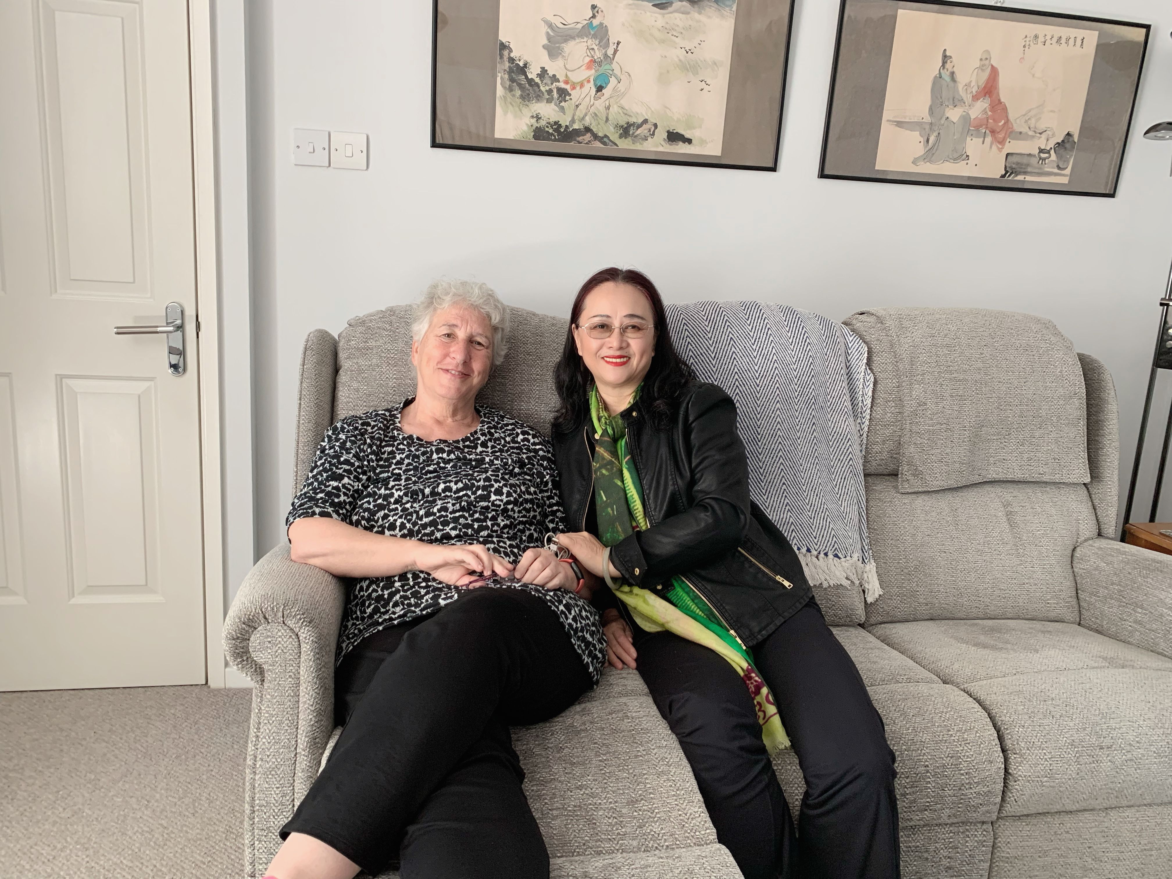 送女儿到伦敦安顿好后,我们便迫不及待地搭上火车,直奔Royston。老师从剑桥大学退休后就定居在离伦敦火车车程一小时左右的Royston 小镇。当火车停稳,我一边整理背包一边踏出车厢时,只听得妹妹说,那是不是你的老师。抬眼一看,果然,是Val 笑吟吟地已经进到了站台来接我们。我奔过去,激动得紧紧抱住了我想念了32年的恩师,她也激动得和我紧紧相拥。