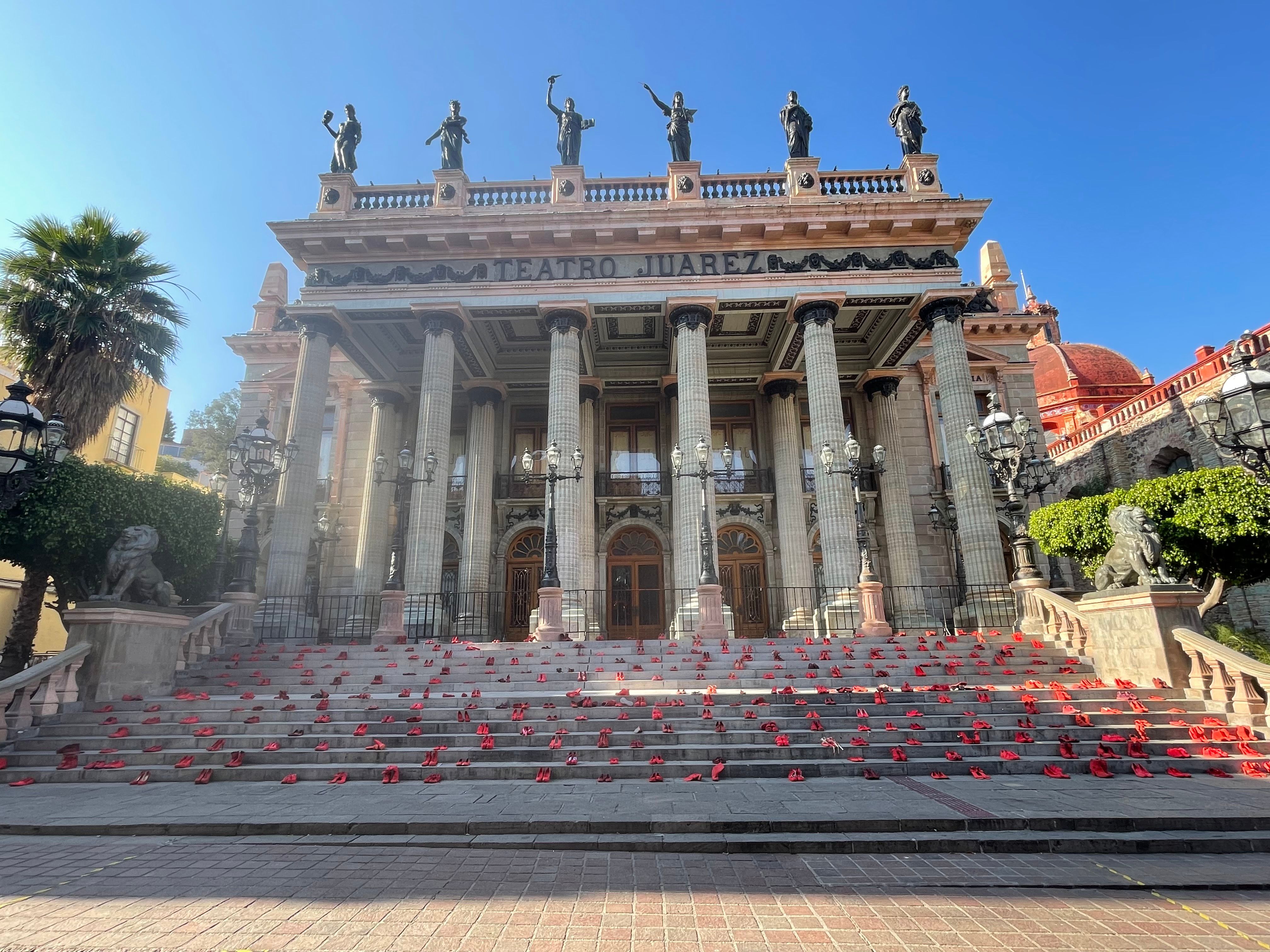 照片1–3,街景; 照片4-5,在当地由火车站改建的民间超市; 照片6,广场街景铜狮子,这只狮子与众不同; 照片7,瓜纳华托大学UG; 照片8,华雷斯剧场,Teatro Juarez; 照片9,剧场前的台阶出噻满了红舞鞋,不知有多少女演员为这个剧场的出名付出了幸劳? 瓜纳华托不大,属于小巧玲珑,具有悠久的历史,难怪会曾被墨西哥老总统宣布为墨西哥首都! 2025年11月27日!!!