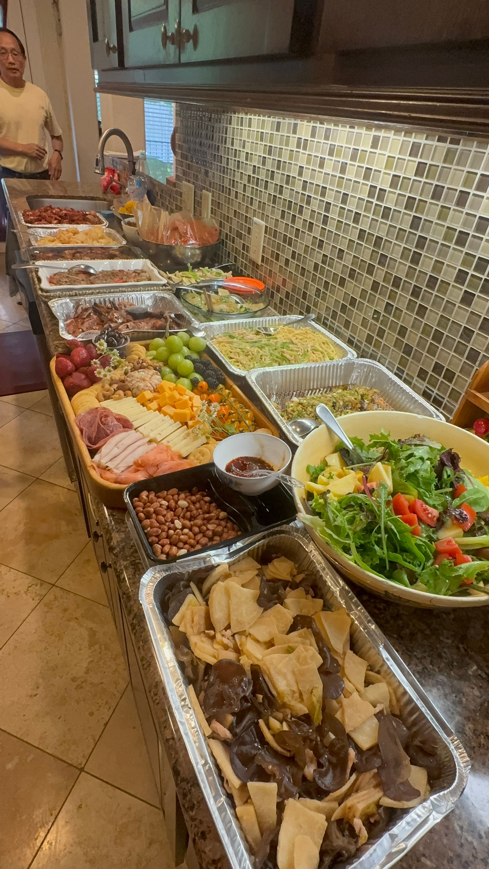 校友们跨越从70届到20届的数十个届别,带来了各自精心准备的家乡风味美食,中西合璧,风味各异,色香味俱全,摆满一桌。其中既有成功的企业家,也有活跃在政界、学术界、文艺界及各行各业的职场精英。大家抚今追昔,深情回忆在广外的求学时光,畅谈人生感悟,相互勉励,共同展望美好未来。