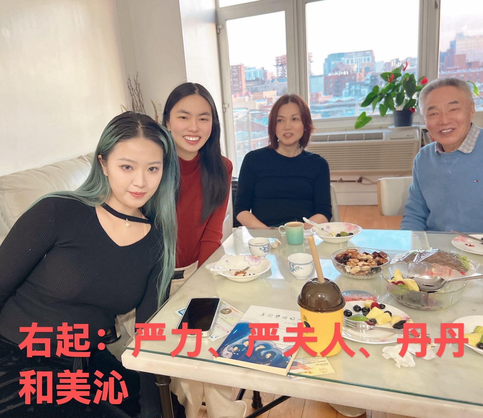 我想人类是靠磁场聚拢的,有些人认识很久,依然陌生,而有些人初次见面,便一见如故。我们围坐在客厅里暗红色的木制餐桌旁, 品尝着土耳其风味的糕点Baklava,碧绿脆皮包裹着金黄酥脆的开心果,浸着花香的Baklava香甜酥软。金骏眉的茶汤入口温润。一边翻看着一摞《纽约一行》,欣赏着墙壁四周的油画,一边听严老师聊诗歌和绘画的创作。平时不习惯当面赞美他人的女儿由衷佩服说:“严老师的诗中有画面的冲击,画作中流淌着诗情。”