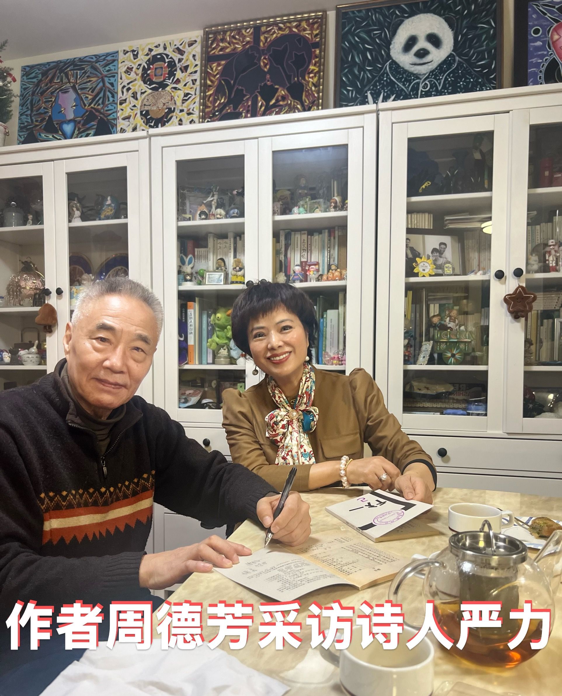 谈笑间我完全感受到他们夫妻间的默契和放松、恩爱和信任。“为什么严老师诗画的创作能取得如此成功?”严夫人很骄傲:“你不能想象除了天赋,他有多认真!”我问严夫人:“你觉得严力是完美的吗?或者说你希望他还有什么可以改进?”严夫人起身给茶壶里续上热水,神秘地笑了:“这个问题很私人哦。”