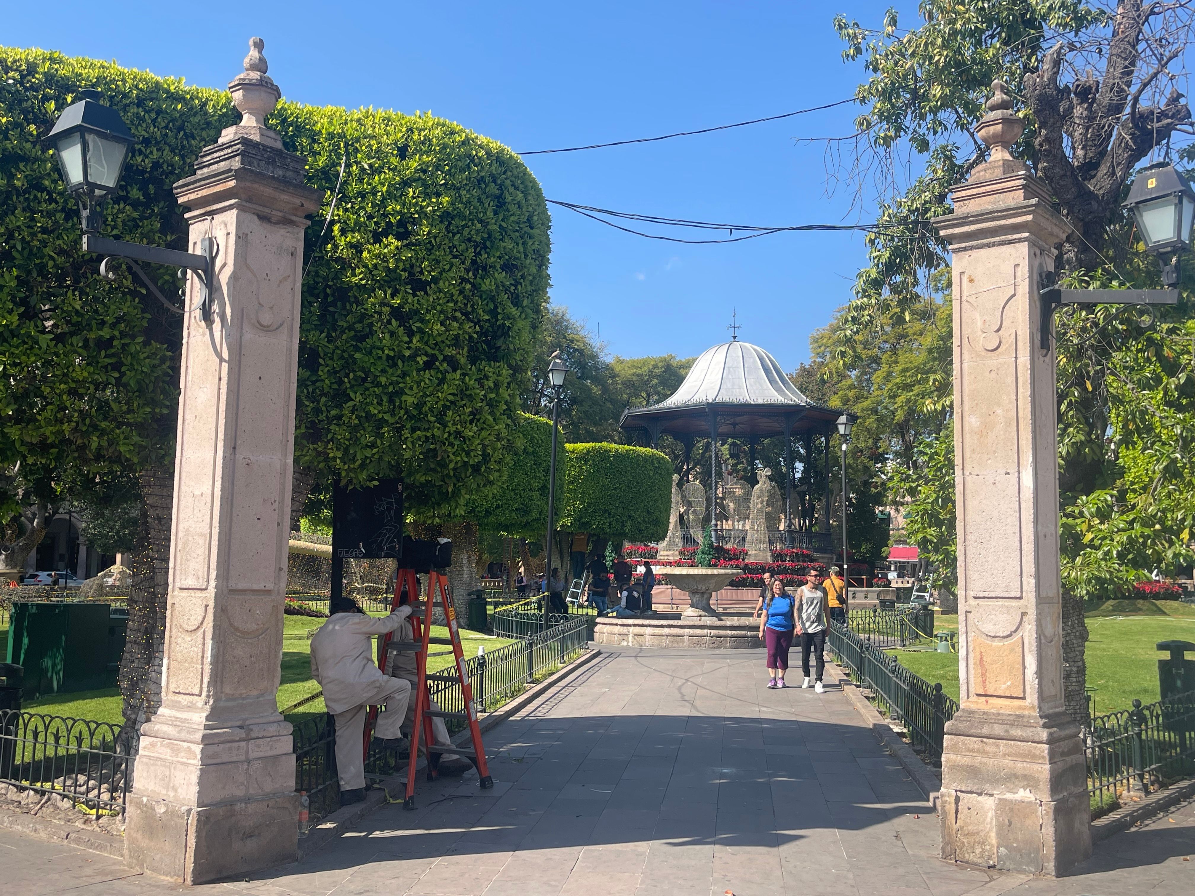与墨西哥所有伟大的西班牙殖民城镇一样,一切都始于主广场和大教堂。莫雷利亚大教堂(La Catedral de Morelia)令人叹为观止。整座大教堂是红火山石头建造的。具有粉红色的色调,使其非常独特。教堂长96米,宽62米,它的两座钟楼高66.8米。在整个历史城区抬头一看就能看到,这是莫雷利亚最经典的天际线。 莫雷利亚大教堂被认为是墨西哥最美丽的大教堂之一,它耗时84年建成,始建于1660年,竣工于1744年。因为耗时太久,所以其建筑风格是巴洛克(塔楼)和新古典主义(教堂主立面)的混合式,是一张“时间的拼图”。据说教堂还有来自德国的管风琴。(照片1和照片2)为莫雷利亚大教堂侧面和正面。
