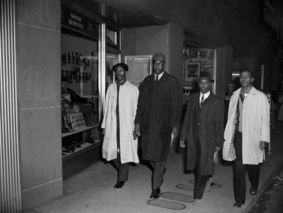 图6. 四位大学生抗议第一天商店关门后离开他们的策略是:日复一日地坚持,以提升公众对种族隔离的关注,迫使百货公司取消种族隔离。